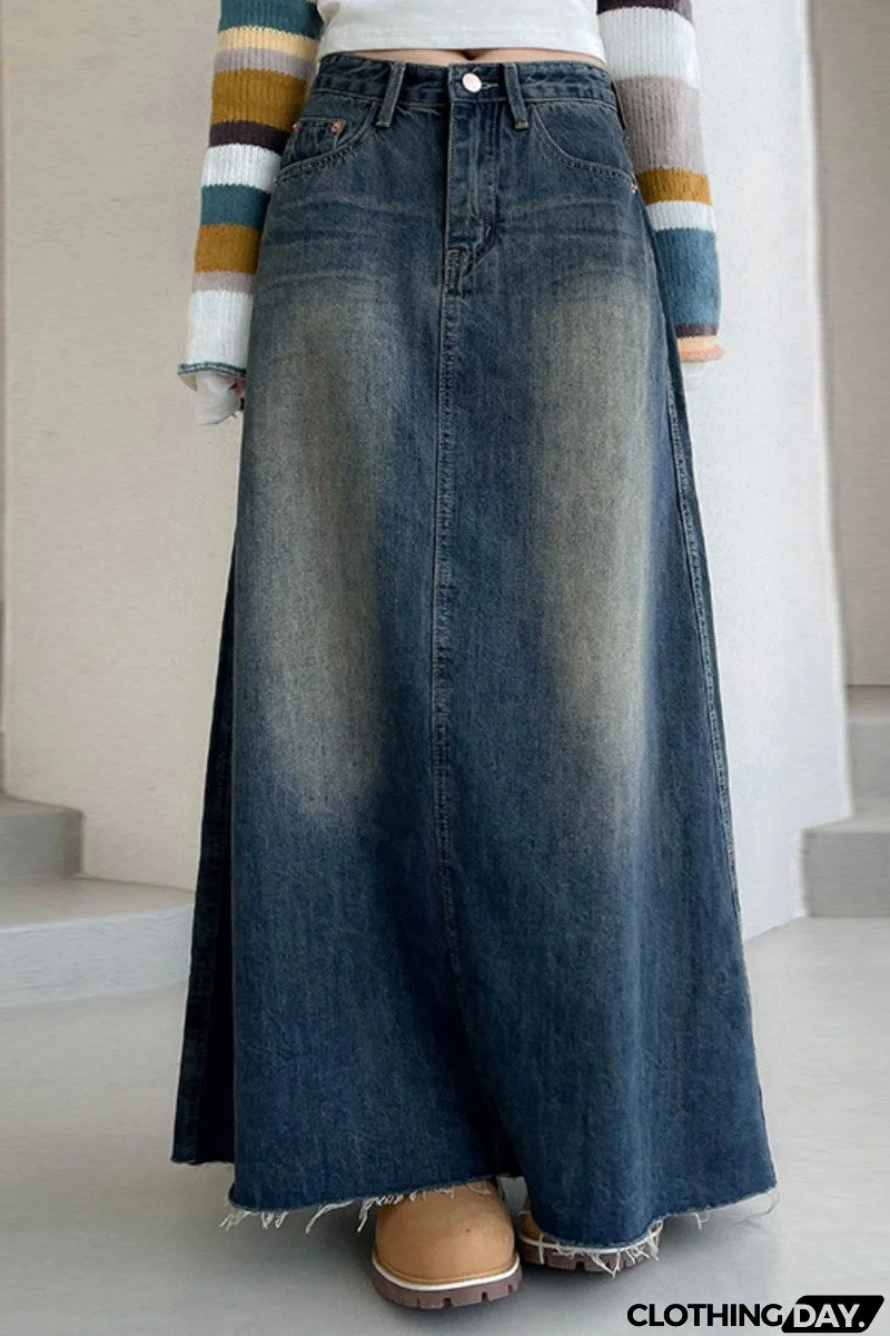 Casual Solid Patchwork High Waist Regular Denim Skirts