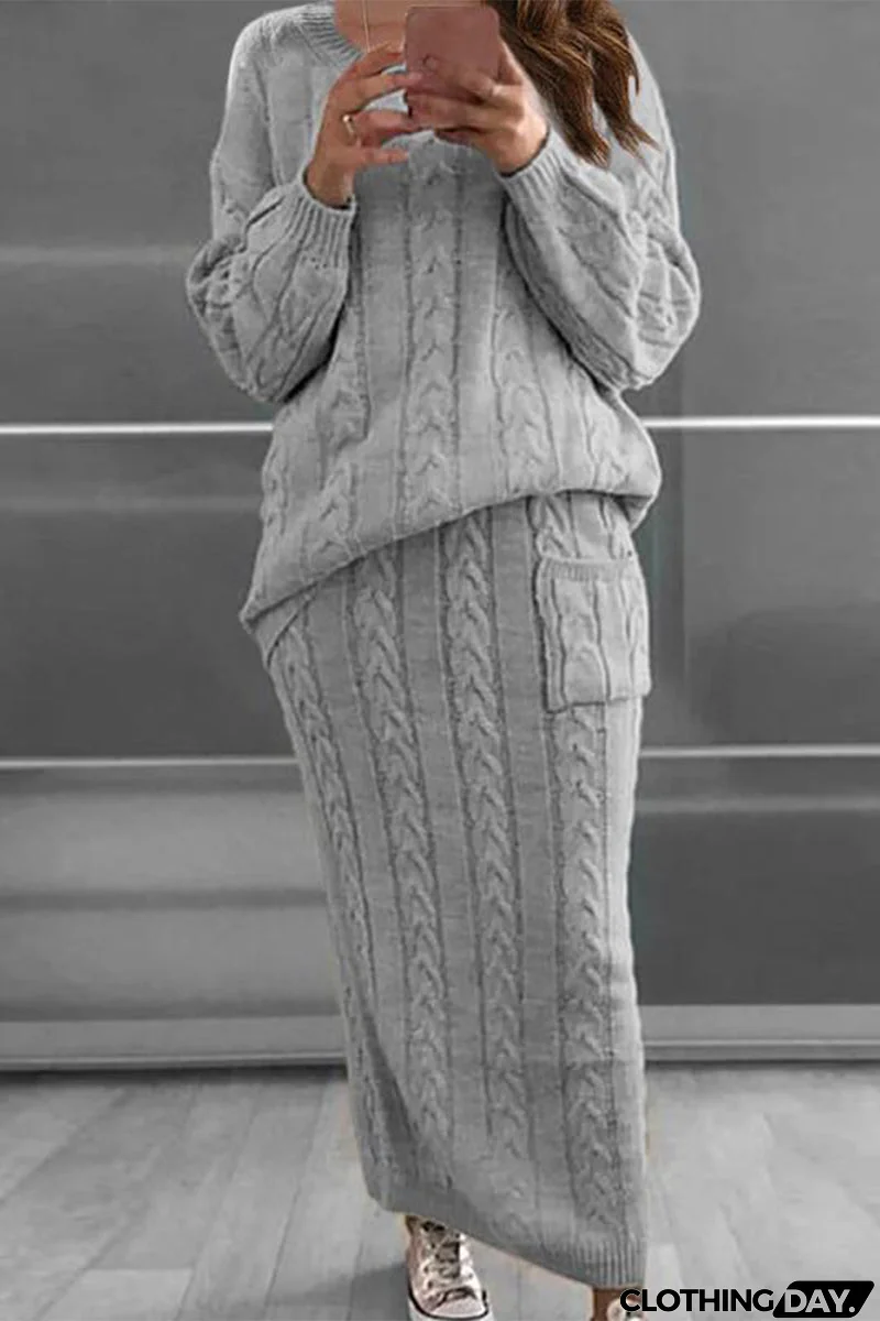 Casual Solid Color O Neck Long Sleeve Two Pieces(12 Colors)