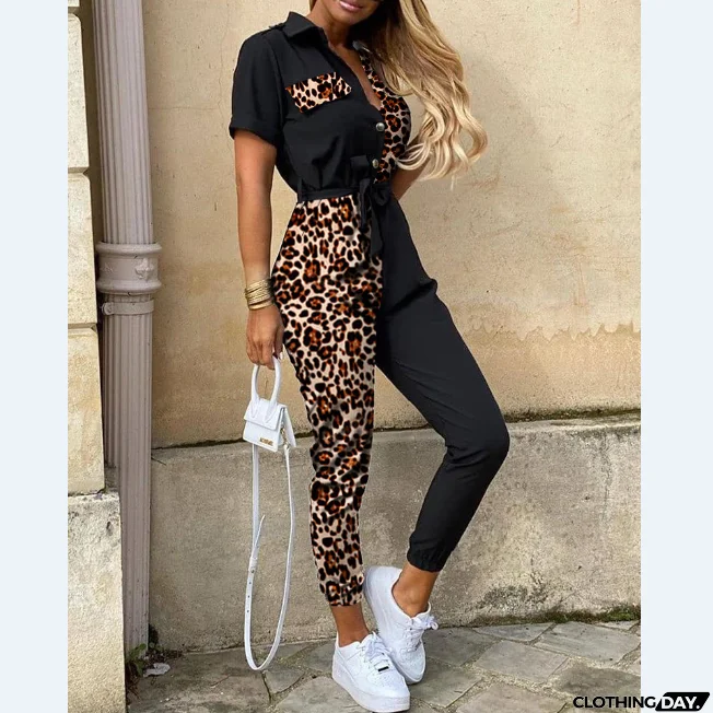 Design Leopard Stitching Jumpsuit