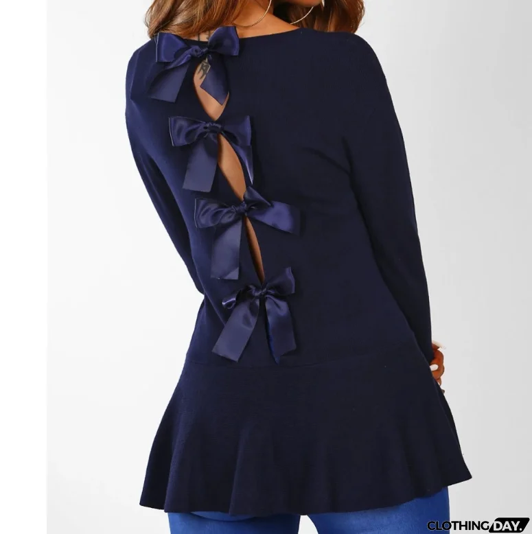 Sexy Fashion Backless Bowknot Long Sleeve Shirt