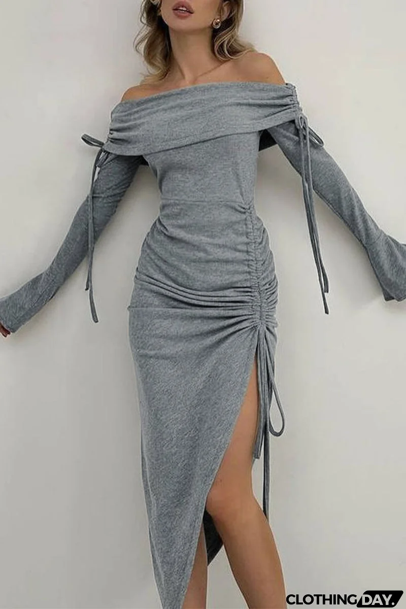 Sexy Solid Color Draw String Off Shoulder Wrapped Skirt Dresses